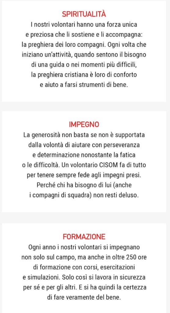 Il Capo Raggruppamento ha ringraziato della sua presenza il Principe e il professore Bochicchio, anch’egli molisano, della storica città di Sepino, sottolineando la nascita del Raggruppamento come un bene in termini di giovinezza rispetto agli altri raggruppamenti già da tempo sul panorama nazionale. Il Molise esiste, è vivo ed è giovane. Il Cisom in questa regione è attento promotore di tante iniziative grazie anche alla sinergia creatasi con il Reverendissimo don Massimo e alla protezione di Maria Santissima Vergine Addolorata di Castelpetroso. Di rilievo l’iniziativa della gestione dell’aspetto sanitario presso “La Casa degli Angeli” di Campobasso ad opera dei nuovi volontari della città capoluogo di regione, la quale, a breve, vedrà istituita la Sezione Cisom, con sede legale e operativa proprio presso la suddetta organizzazione di volontariato. Ciò ha dato nuova energia ai volontari e nuova linfa alle attività dell’anno 2020. L’iscrizione negli elenchi regionali di protezione civile della Fondazione Cisom è un traguardo importantissimo per la collocazione del Corpo in ambito regionale e per l’operatività dei volontari all’interno della Protezione Civile; far parte della colonna mobile regionale e attingere ai mezzi della regione Molise significa avere utilità e visibilità sul territorio in caso di emergenza o calamità.